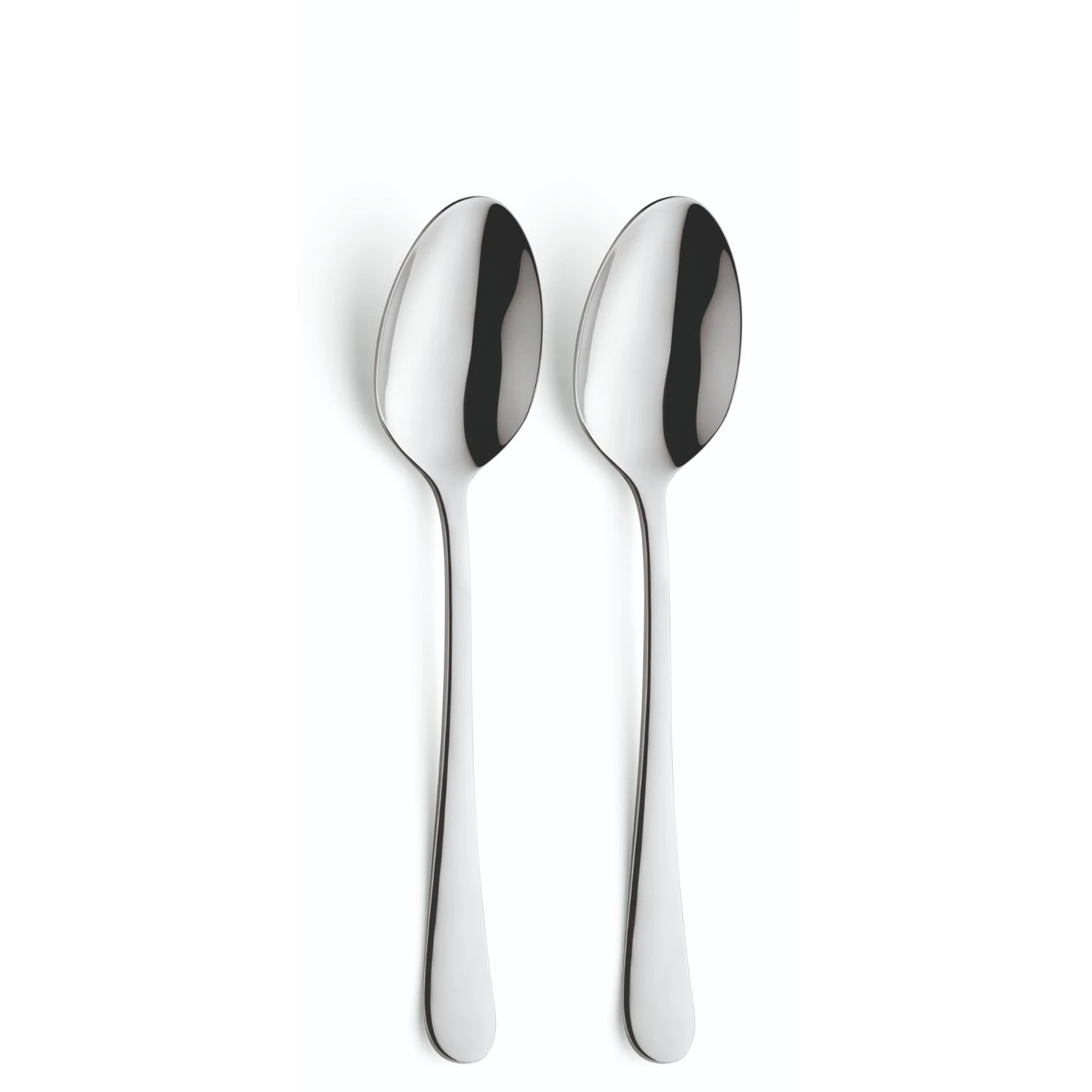 Amefa Austin heeft een verfijnd en elegant ontwerp. Het bestek heeft een moderne uitstraling maar lonkt met zijn zachte lijnen en vloeiende rondingen ook naar traditie. Deze 2-delige Amefa tafellepelset bestaat uit 2 lepels met een afmeting van 20,5 cm.